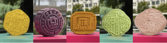 月饼造型深度融入校园文化符号,五款造型分别对应学校校徽、校门、图书馆、文体馆及大学生活动中心,将熟知的校园场景“浓缩”于月饼之上。同学们纷纷表示,吃到这种极富创意的月饼,是独属于西外的中秋仪式感,现场洋溢着轻松愉悦的节日氛围。