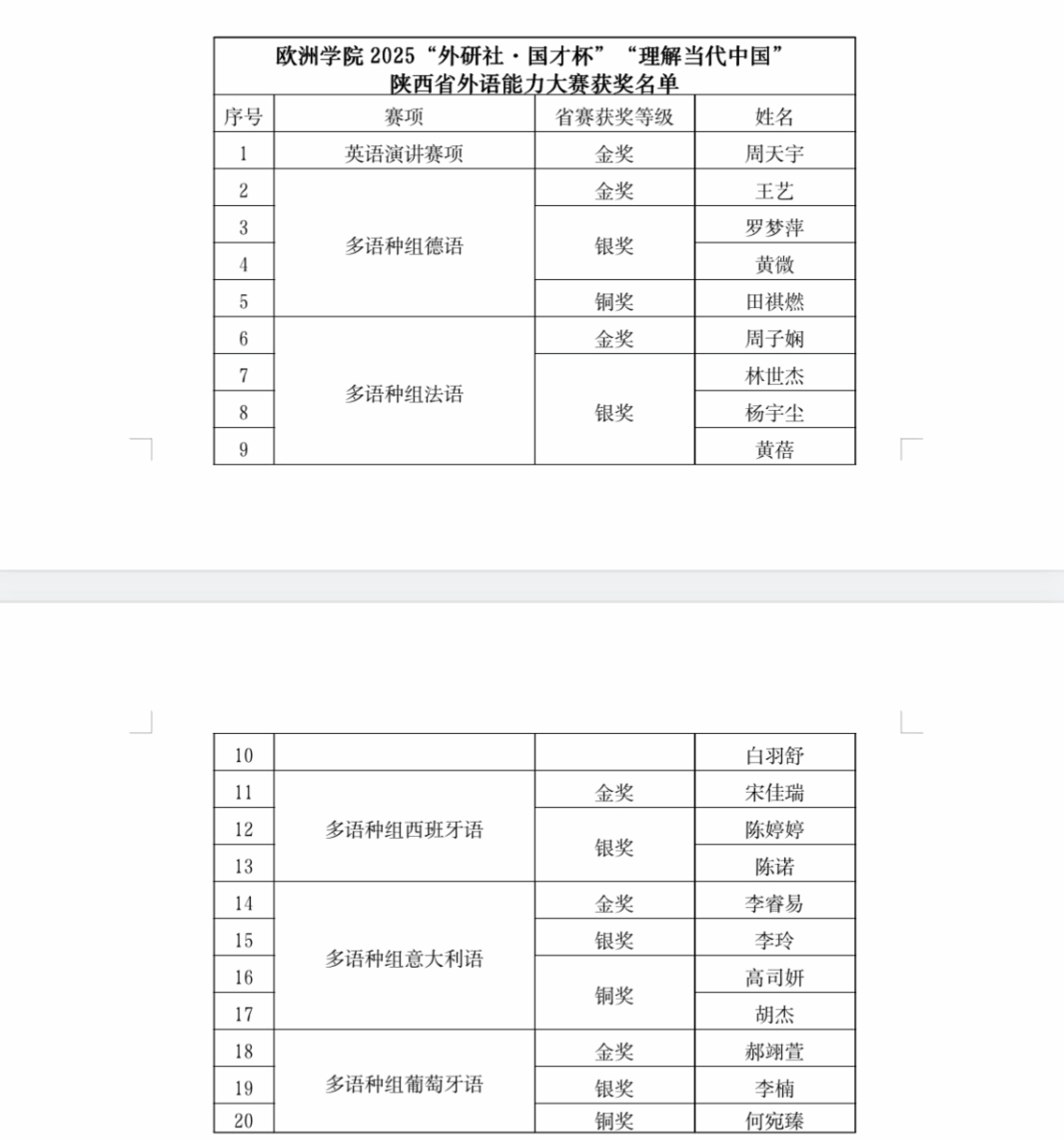 获奖同学的优异表现,充分彰显了我院学子优秀的综合实力与我院优良的育人环境。近年,我院坚决贯彻落实党的教育方针,以“三进”工作为抓手,扎实推进党建引领学科发展、教育教学、队伍建设、人才培养相容共进,促进学生德智体美劳全面发展,培养具有国际视野和跨文化沟通能力的复合型人才。在此向所有获奖同学表示最热烈的祝贺!向为指导学生辛勤付出的各位老师表示衷心的感谢!希望全体同学以获奖同学为榜样,以赛促学,以赛促练,再创辉煌!